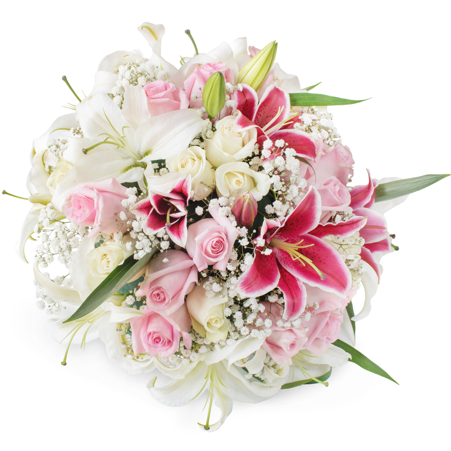 Enhance any occasion with our Exquisite Blossom Bouquet, a stunning mix of white and pink roses, white lilium, purple oriental lilium, and gypsophila. Each bloom is hand-picked to ensure the freshest and most vibrant presentation.