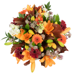 As the days are getting colder, bring a burst of colourful blooms inside and spread some warmth and cheer! This heartwarming bouquet is created from lavish roses, fresh gerberas and alstroemeria.