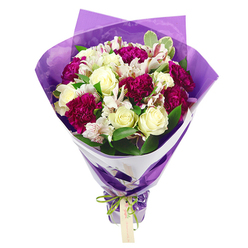 Radiating a sense of elegance and joy, this unforgettable bouquet-arranged by seasoned florists in Southfields-emerges as a true celebration of floral diversity and texture. At its heart, grand hydrangea clusters in layered blues, soft teals, and muted violets create a calming, cloud-like presence, reminiscent of peaceful mornings near Wimbledon Park. Classical roses in pastel lavender and creamy white are interspersed throughout, their petals gently opening in a display of timeless romance. Dense, snowy ranunculus blooms add a plush touch, while pale lemon-yellow lisianthus buds peek through, casting subtle highlights and enhancing the arrangement's airy feel. Sprays of vivid fuchsia and blush-pink blossoms, together with light pink astilbe plumes, dance around the bouquet, providing whimsical movement and pops of vibrant colour. The central bouquet is beautifully textured with wispy, lacy Ammi Majus, and finished by deep green foliage that grounds the composition. The stems are tightly bound with a shining royal purple satin ribbon, which beautifully complements the cool floral palette and references Southfields' sense of local refinement. Perfect for commemorating a special day-whether a heartfelt birthday, anniversary, or a gesture of admiration-this hand-tied bouquet is an artistic tribute to Southfields' lively yet peaceful neighbourhoods. The expert arrangement and harmonious colours promise to brighten any occasion and bring a fresh, elegant touch to homes across the area.